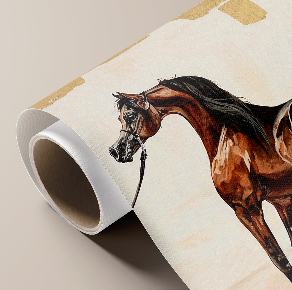 الحصان العربي البني الأصيل مع ورق الذهب في الخلفية