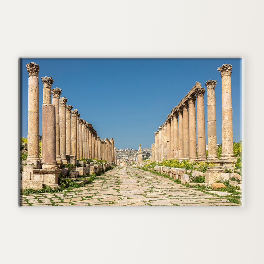 عمان، الأردن. تفاصيل الأعمدة الرومانية داخل القلعة