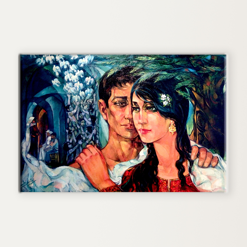 Love In The Shade , Palestinian Folklore Art - By Ismail Shammout